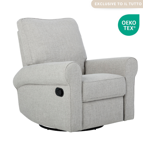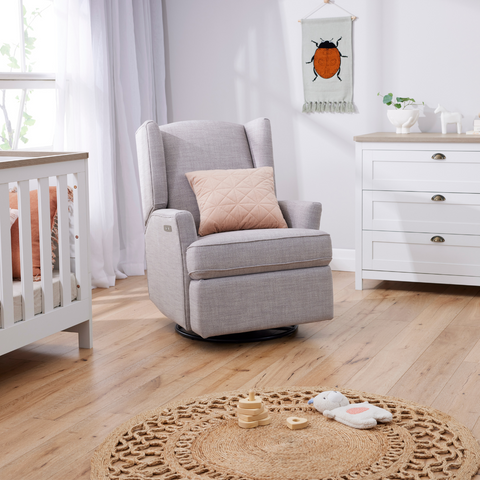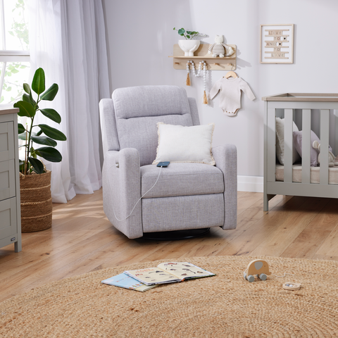 It’s common that your little one might be clinging to you like a koala, (hello contact naps), they will only sleep when they are being held. This is very common and normal for them to be more needy and clingy than usual. Make yourself comfortable and take advantage of these beautiful cuddles. I love settling my baby on my iL Tutto Frankie Electric Recliner Glider Chair as it gently glides and swivels in a super smooth motion that bubs loves. The Frankie chair is electric and you can seamlessly recline with a push of a button. It also has USB charging points so I can charge my phone and my kindle whilst we are super cozy with the tall backrest. The side pockets are a winner too, they are great for storing books and my kindle.