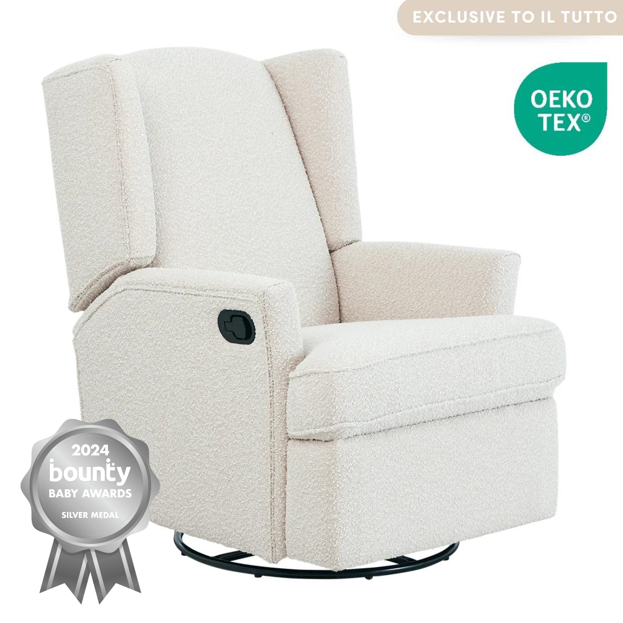 Our best-selling and award-winning Chelsea Glider & Recliner Nursery Chair is now offered in our beautiful and popular Vanilla Bouclé.