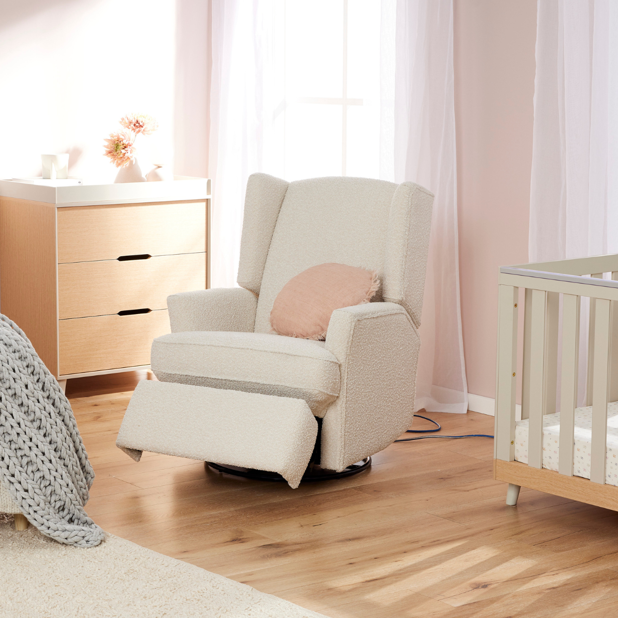 Chelsea Recliner Glider Chair in Vanilla Bouclé