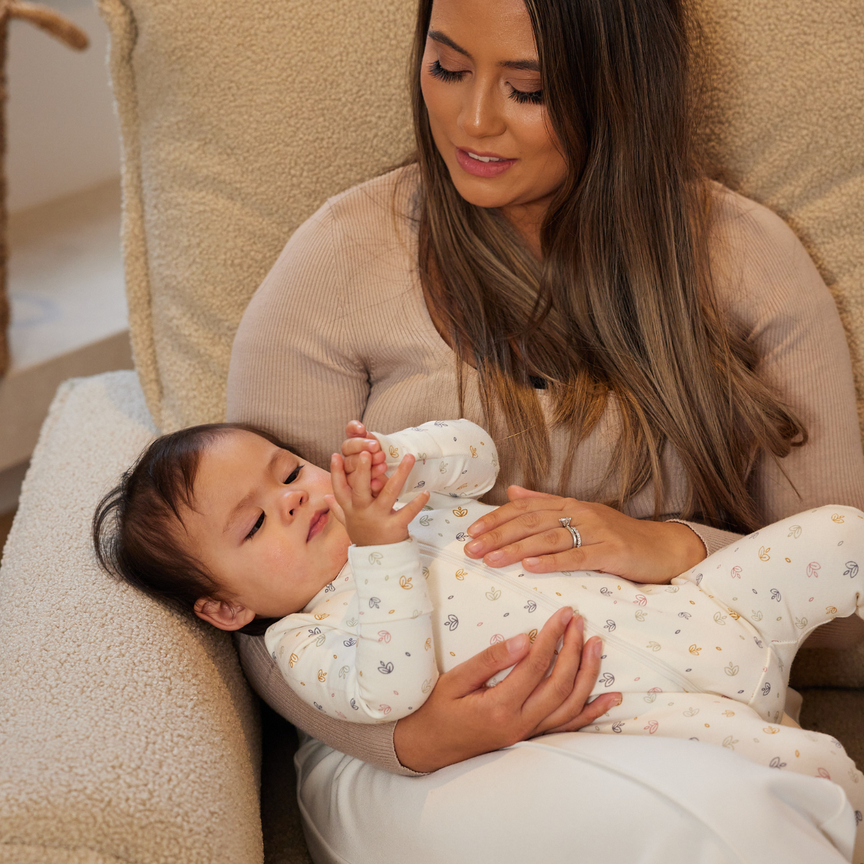 Wrapped in our taupe teddy-fleece fabric, the Louie Chair offers an unparalleled level of softness and luxury. It's like sitting on a cloud while cuddling the softest teddy bear. The new padded armrests and backrest ensure you remain comfortable during extended use. This nursery chair is the softest and most luxurious option in our range, providing you with a cosy and inviting spot to bond with your baby.
