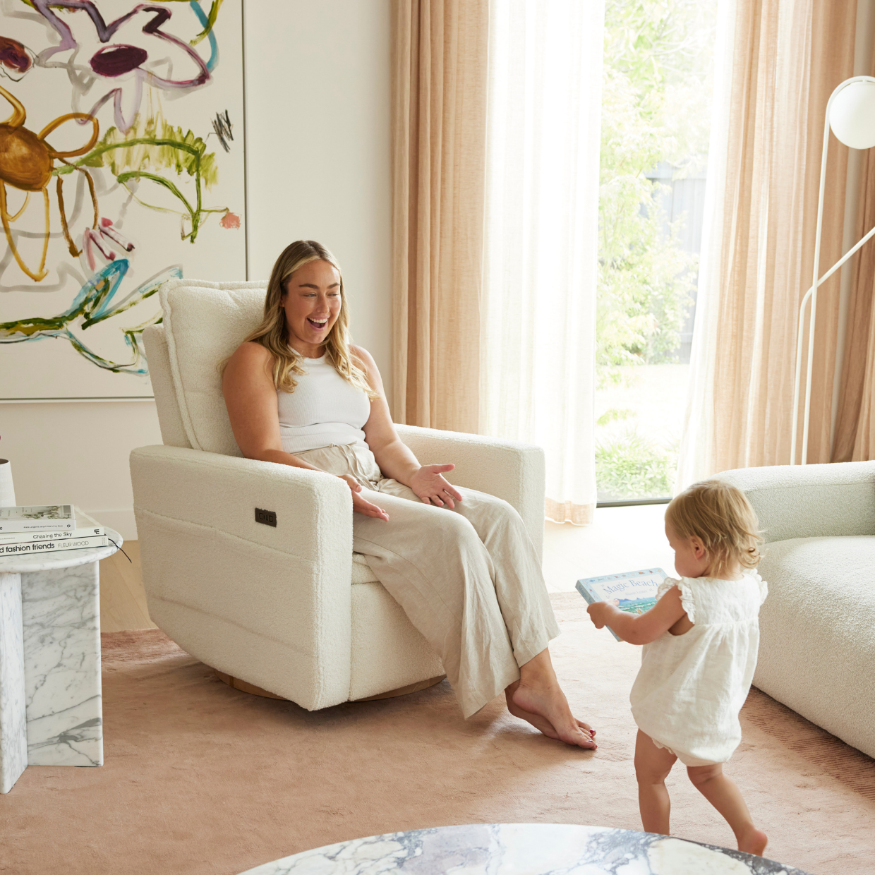 Immerse yourself in the plush comfort and unmatched functionality of this Frankie Electric Recliner Nursery Chair in Coconut, we know you won’t regret it!